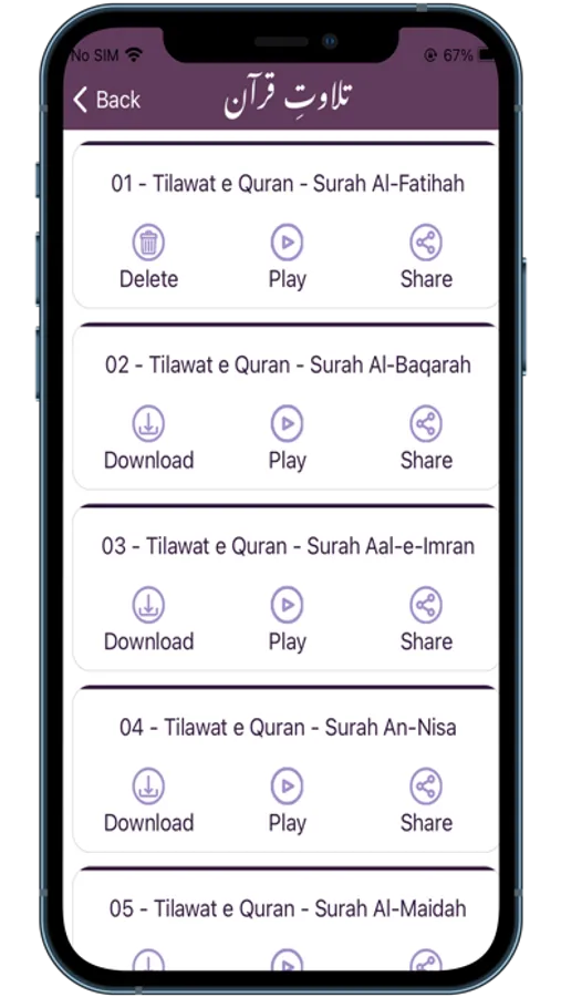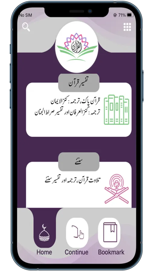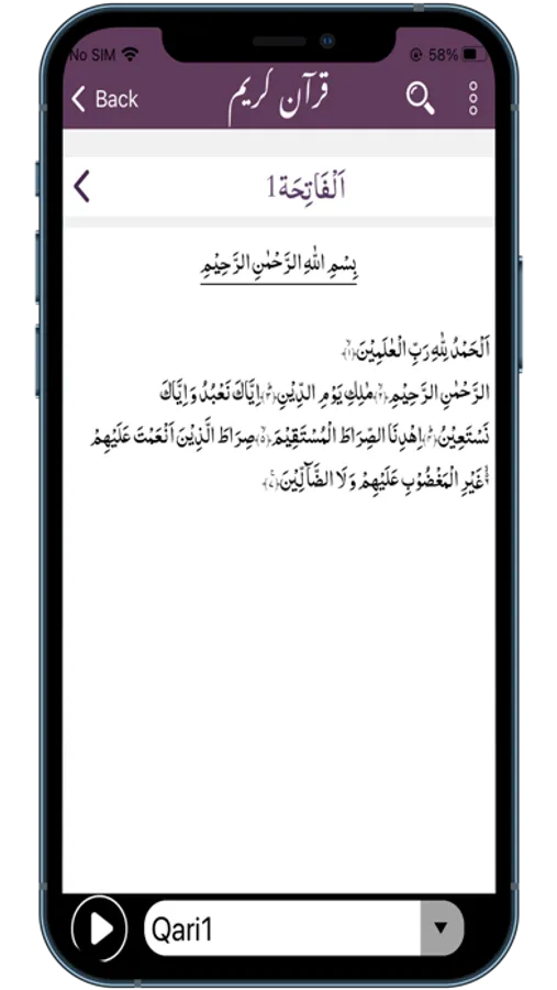 User can select any desired section and can find any particular surah (Chapter) or ayah (Verse).