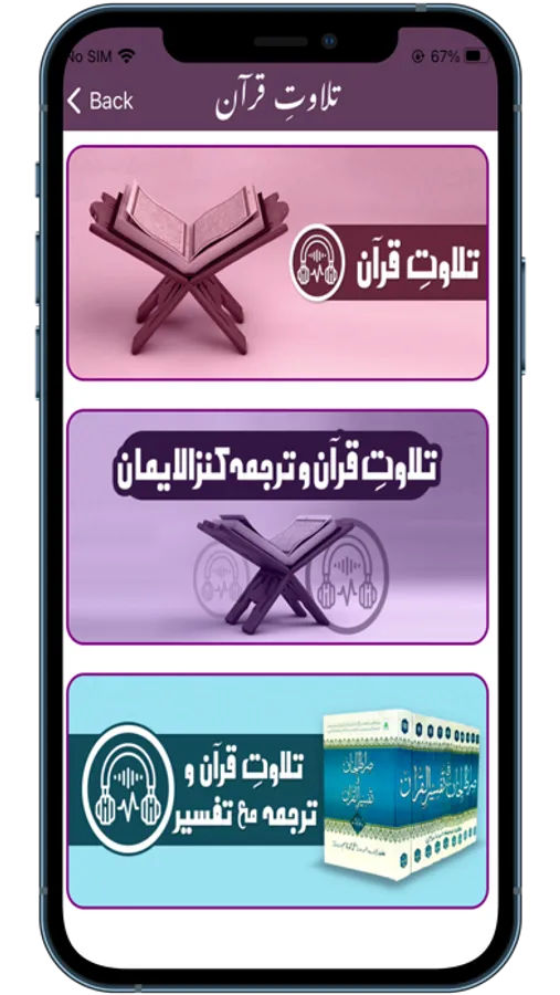 1) Multiple Translations: User can read two translations i.e. Kanz-ul-Imaan and Kanz-ul-Irfan.