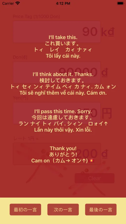 また、お店は桁数を縮めて表示することがあります。(例:150 なら 150k(キロ)つまり150000ドンの意)