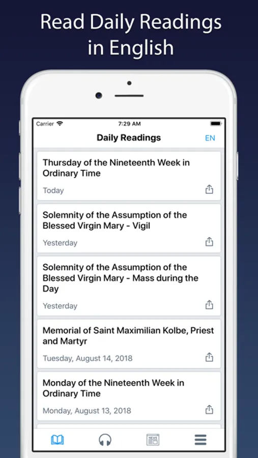 Daily Readings - INRI app is a beautiful, easy to use, and powerful app for Catholics. Daily Readings available in multiple languages such as: English, Spanish, French, Italian, Tagalog, etc. This is the perfect app for you if you are a busy parent, a grandparent, a student… or anyone that wants to reconnect with God on a daily basis but may not always have the time.