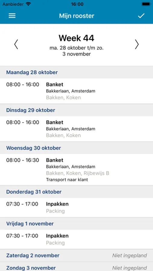 In één klap kun je zien wanneer je in de week bent ingeroosterd. Dien je als medewerker eerst je rooster goed te keuren? Met één druk op de knop keur je je hele rooster voor de geselecteerde week goed. Zo simpel is het.
