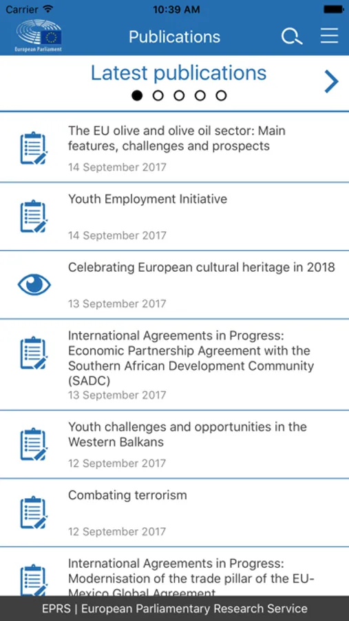 This app gives you access to all the publications and infographics published by the European Parliamentary Research Service (EPRS). As the in-house research service of the European Parliament, we provide independent, objective analysis on EU issues, policy and law.