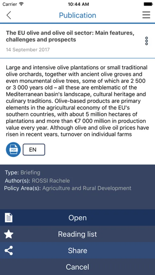 You can browse and search for publications by policy area, your favourite author, publication date, and even the size! Once you find the publication you want, you can easily share it with your friends or put it on your reading list to read later when you have no internet connection.