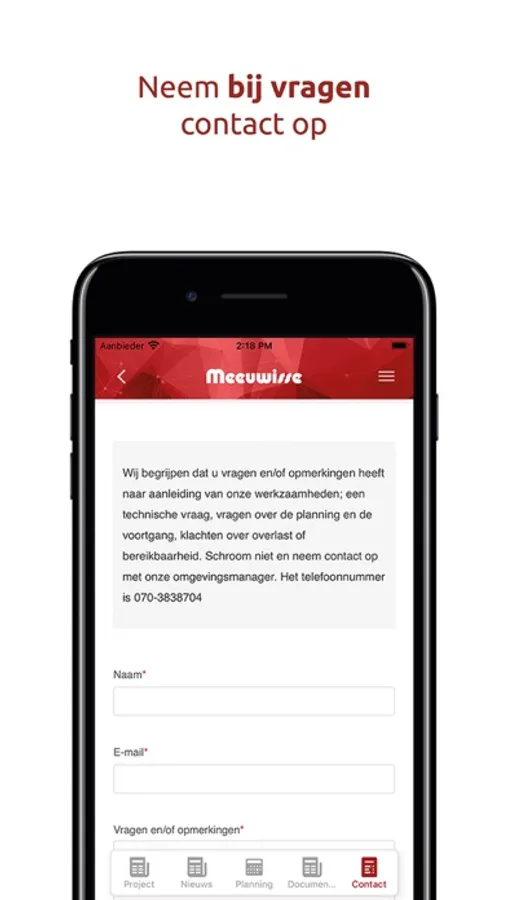 Via deze app ontvangt u informatie over onze werkzaamheden en planningen. U heeft de mogelijk om via de app contact met ons op te nemen. Daarnaast kunt u door pushberichten op de hoogte blijven van het laatste nieuws.