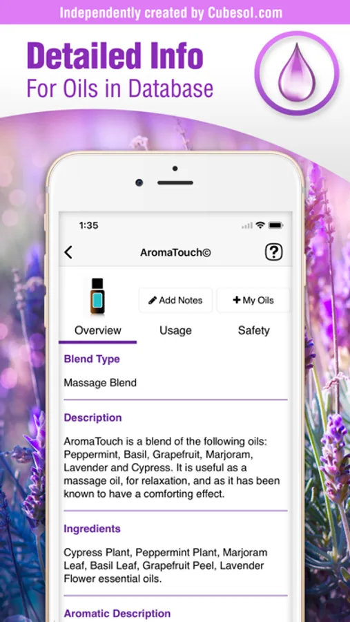 This app has been independently created by Cube Software Solutions Inc. and is not endorsed or affiliated with doTERRA© in any way. This app is for informational purposes only. This app and the products referenced within are not intended to diagnose, treat, cure or prevent any disease.