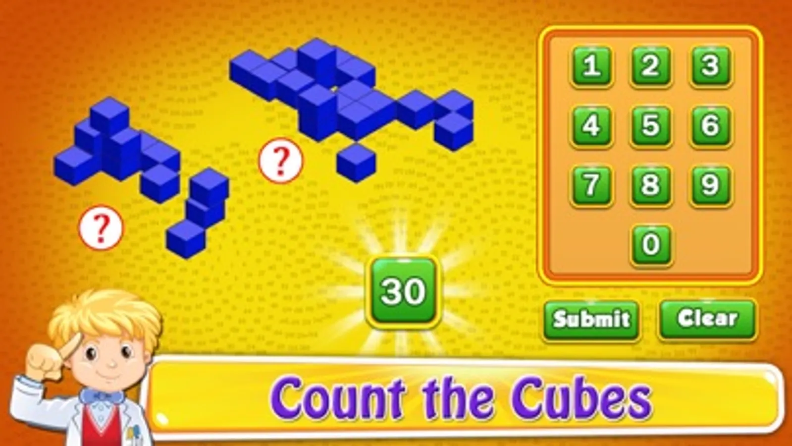 1>Count the Cubes: Count the number of cubes, Enter the answer by clicking the number on the screen or pressing the corresponding keys on your keyboard