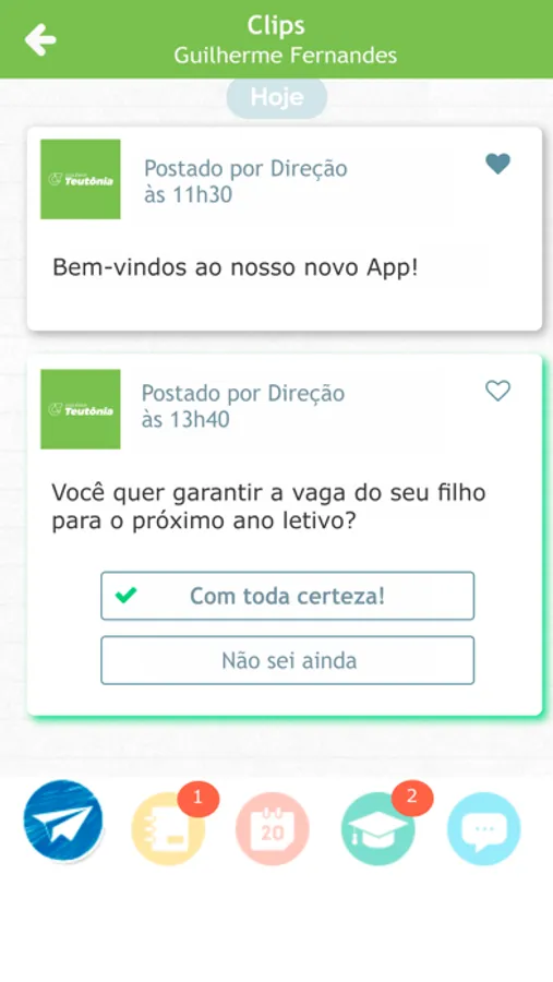 Ágil, prático e seguro, possibilita uma comunicação rápida e simplificada. O aplicativo permite divulgar informações importantes como: bilhetes, recados, eventos, lista de material, material ilustrativo de campanhas de matrículas do CT entre outros.