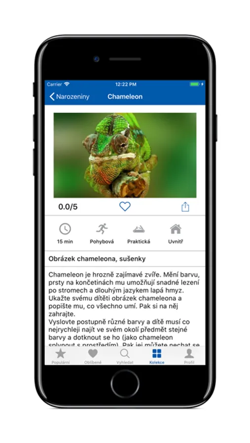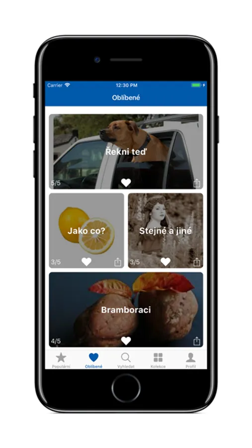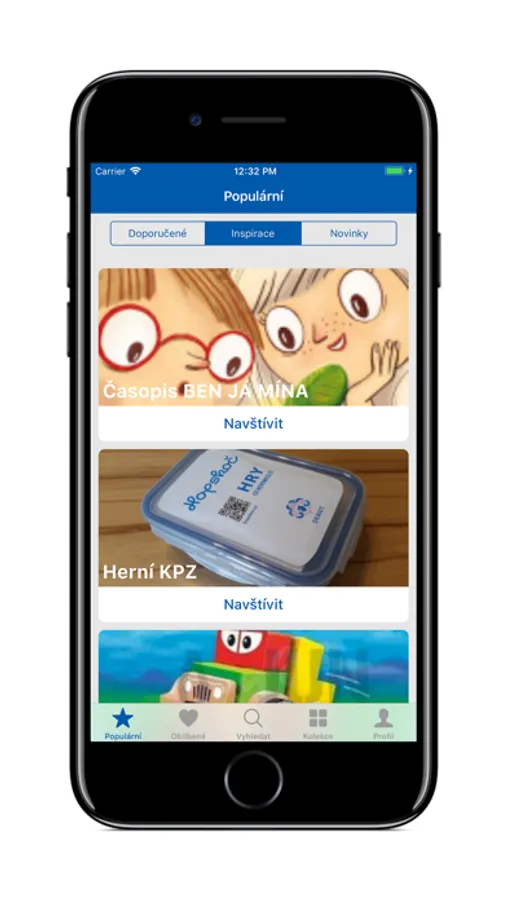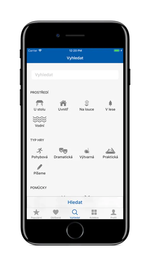 Obrazovka kolekcí her, kde si můžete jednoduše vybrat hry dle prostředí (do auta, na výlet,..) či události (narozeniny).