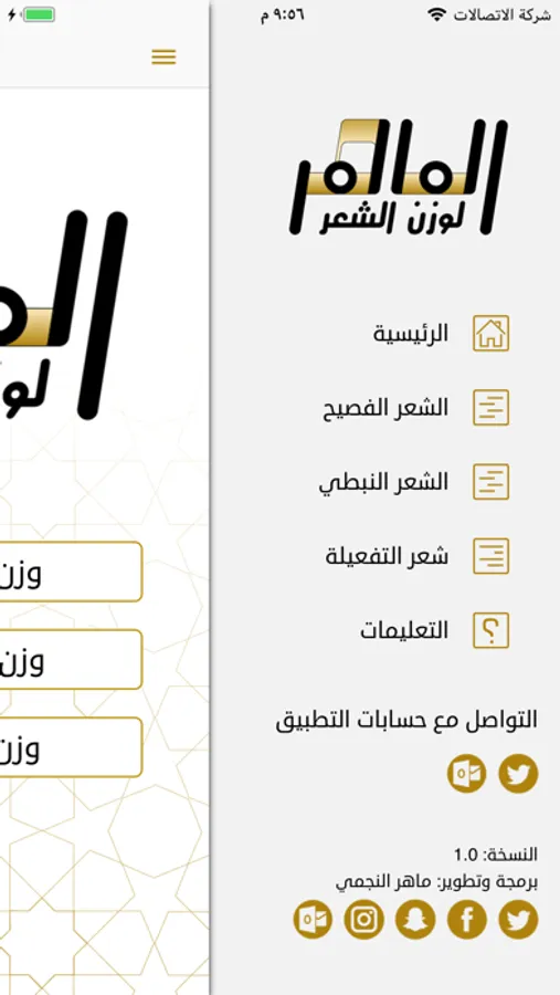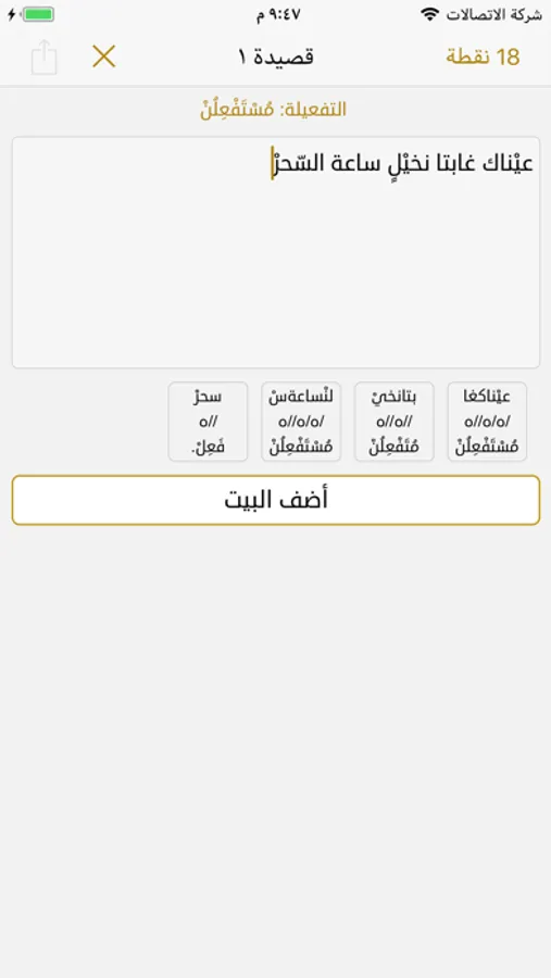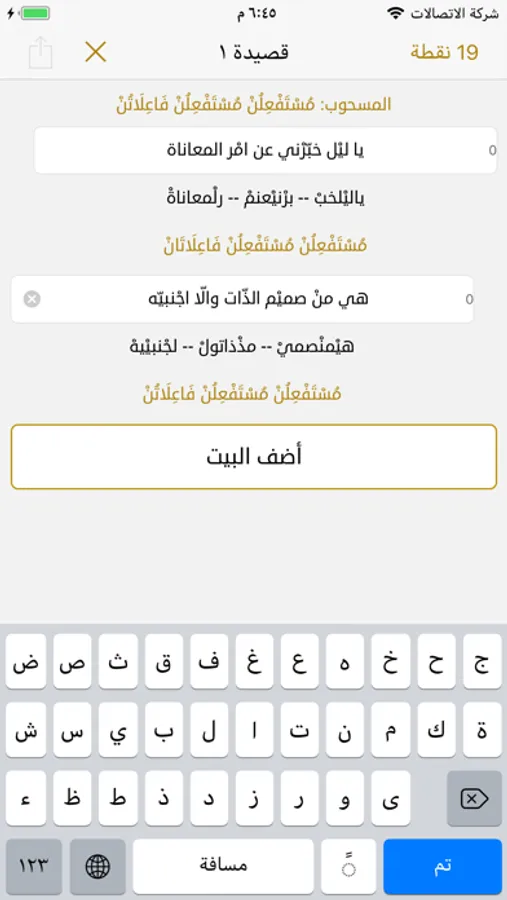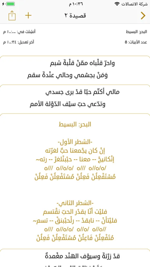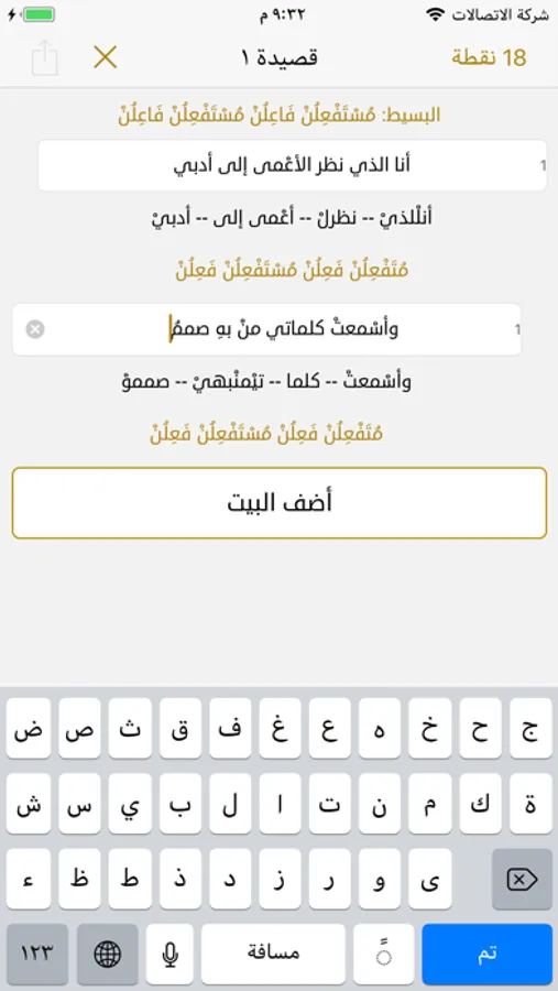 يمكنك عن طريق هذا التطبيق كتابة قصائدك والتحقق من وزن الأبيات وعرض البحر والتفعيلات لكل شطر شعري.