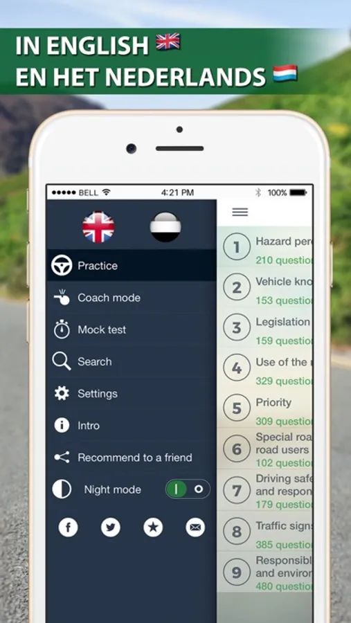 The only app that uses the official CBR test structure. Includes nine topics and 2 900+ questions from all three test categories: Danger Recognition, Knowledge and Insight