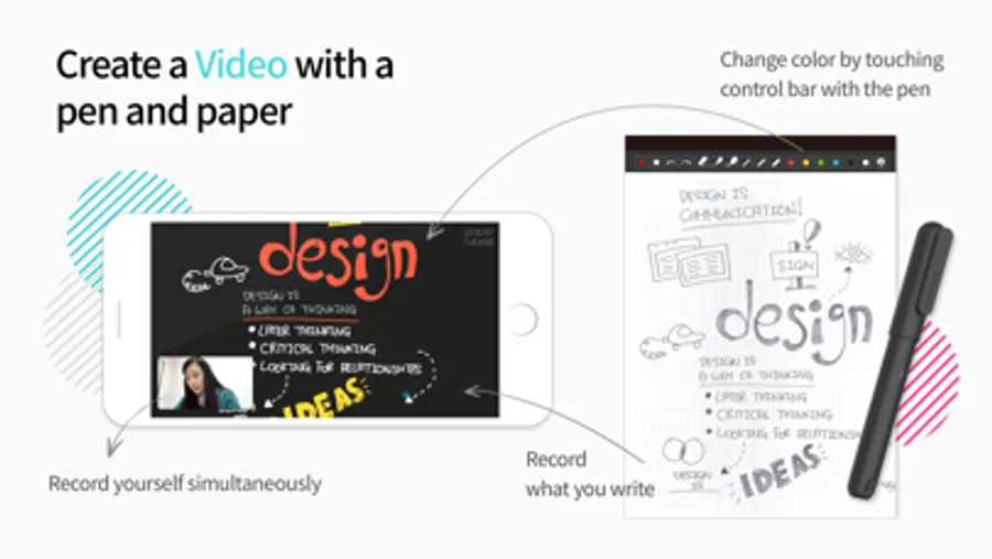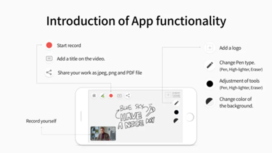 You can adjust the pen type such as the thickness and color of the pen during the video recording, switch between front and rear camera, change the position of the screen and more to make a more professional video.
