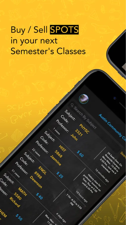 With this app, you can search for classes and textbooks, and connect with students to buy, sell, or switch seats and materials. Includes search filters by professor, class number, subject, ISBN, and marketplace features for transactions.