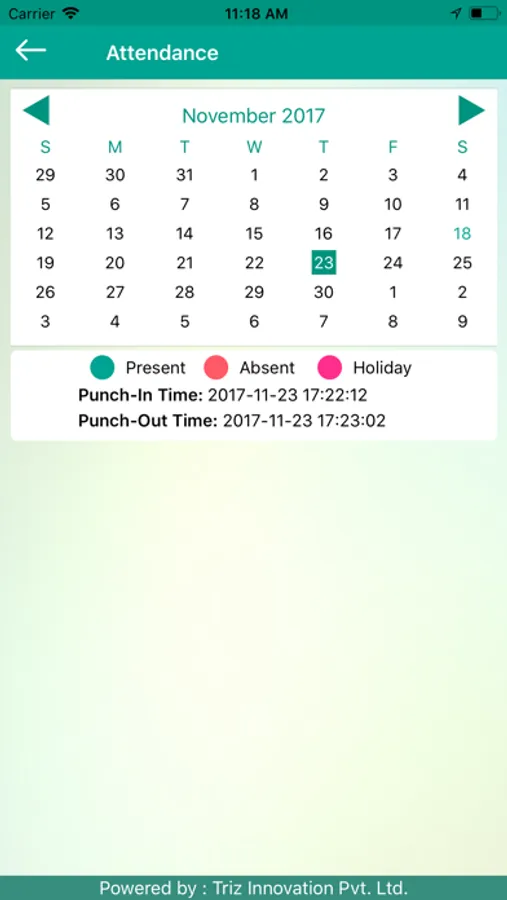 -Selecting a date shows up a list of his/her Punch-in & Punch-out timings.