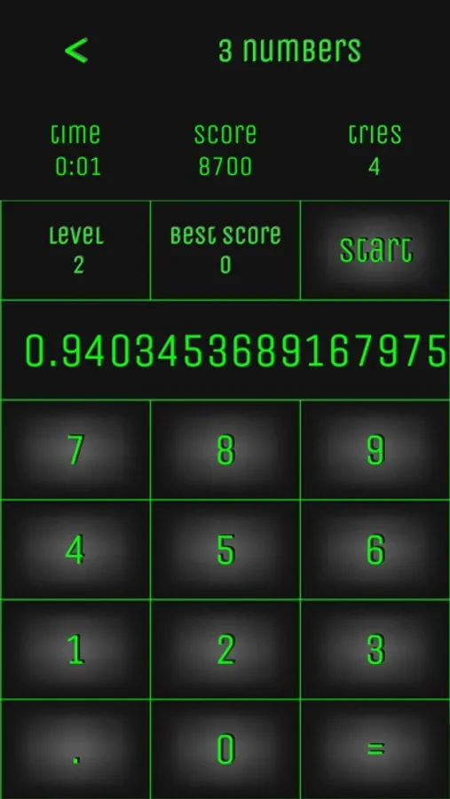 Every level is a random number. Decimal numbers also have a random decimal point. Complete all levels to access 'Select Play'.