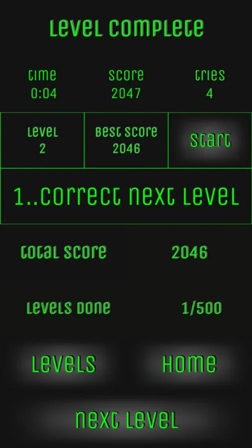 500 levels. 250 levels of 3 to 12 numbers. 250 levels of 3 to 12 decimal numbers.