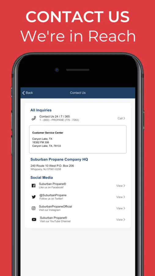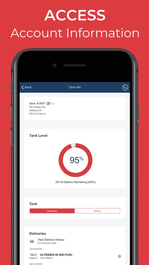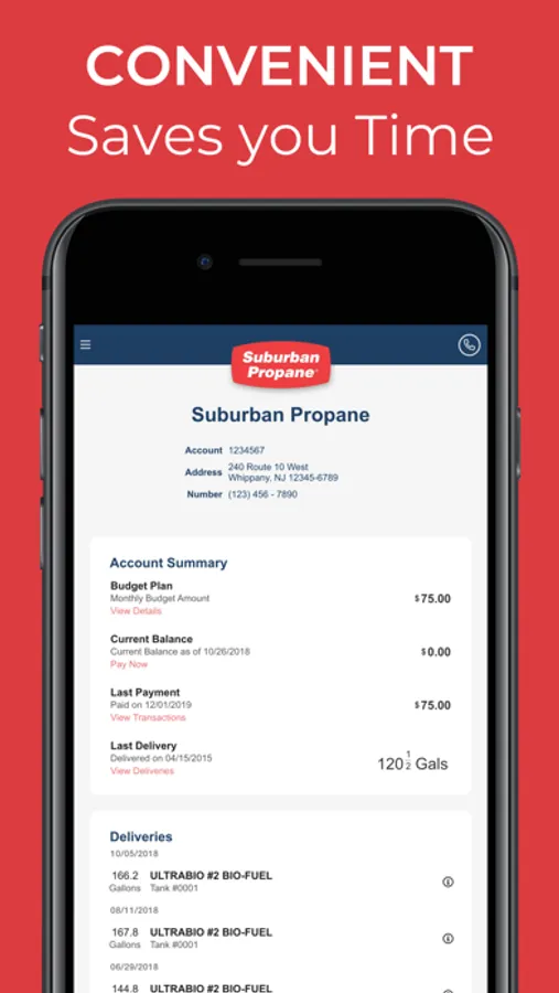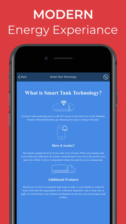 The Suburban Propane app lets you Request Fuel Delivery, View the reading of your tank monitor, and make payments.