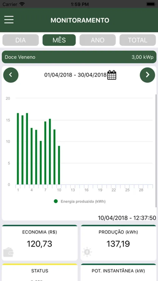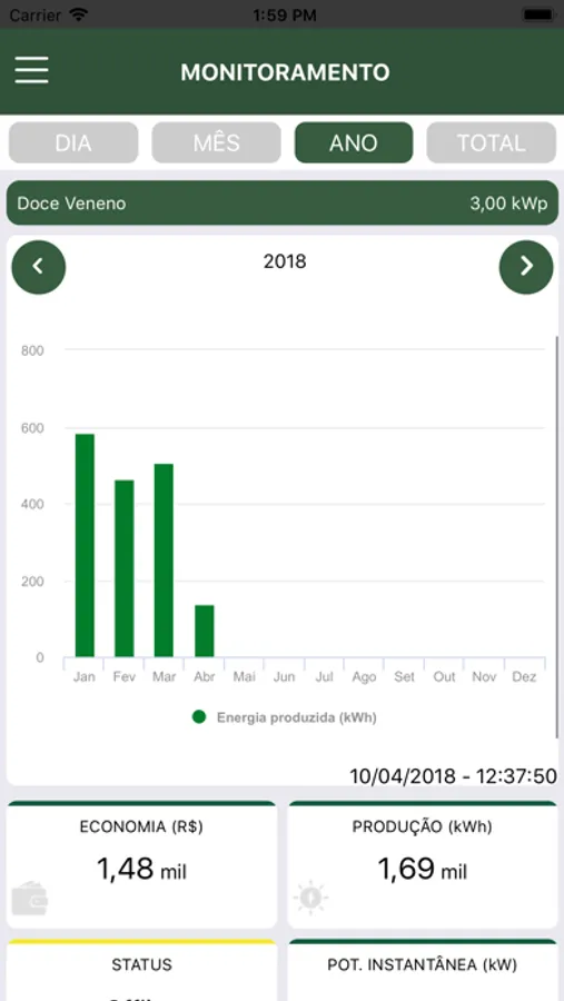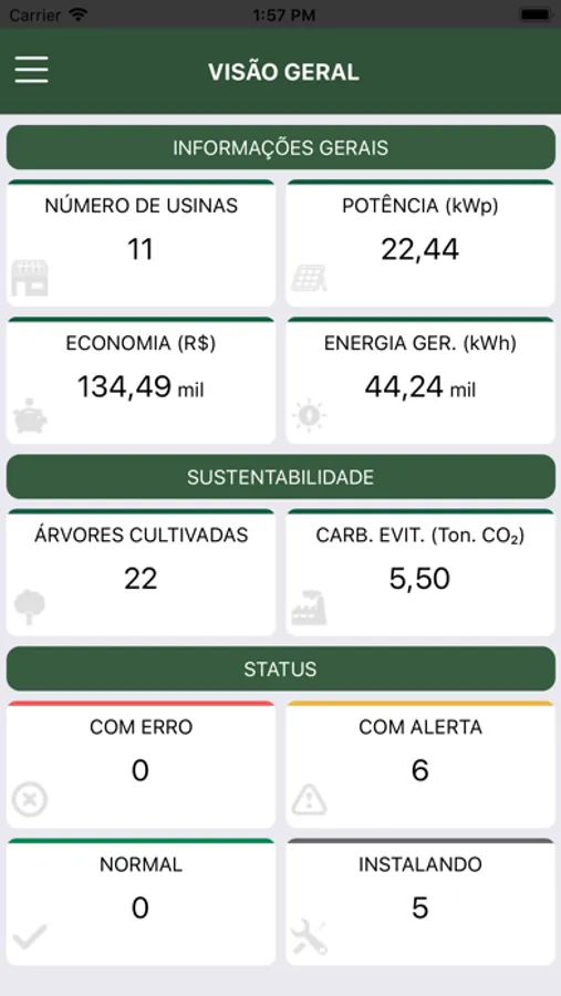 Com a SolarView você sabe todos os detalhes da sua usina fotovoltaica, como a produção em tempo real, ganhos energéticos, econômicos e sustentáveis.