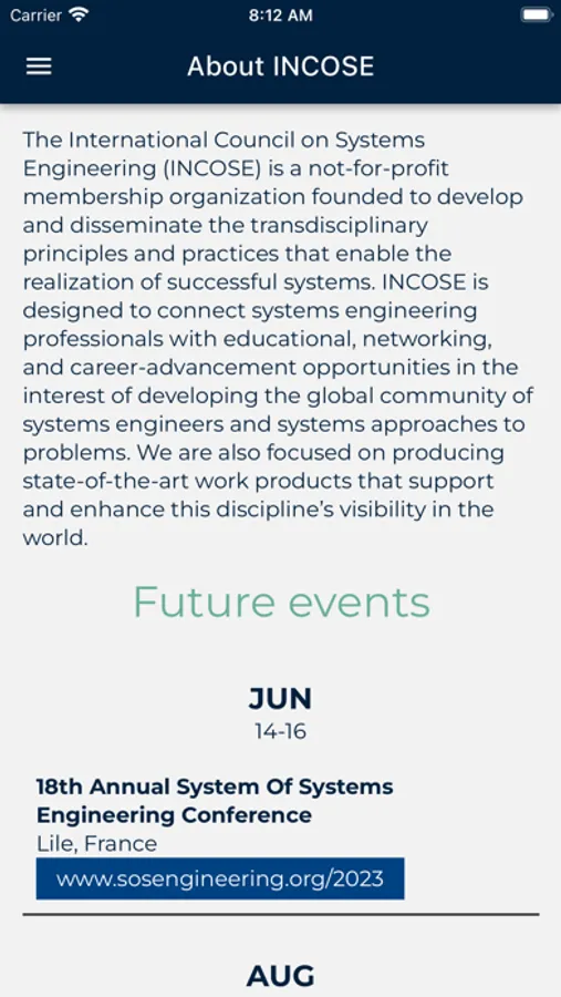 The INCOSE Events app lets you browse times, locations, and descriptions for sessions, and special events and more information about the INCOSE international Symposium and the INCOSE international Workshop and other regional events. Use it to mark your favorites, get notified of the latest news, and access maps to find your way around the venue.