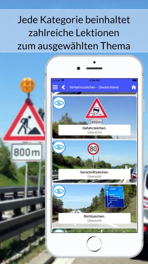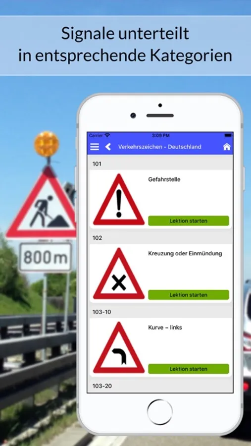 Ideale Prüfungsvorbereitung zur Erlangung des Deutschen Führerausweises für Auto, Motorrad, Roller, Mofa und Traktor. Ideal um die Verkehrssignale zu lernen oder aufzufrischen.