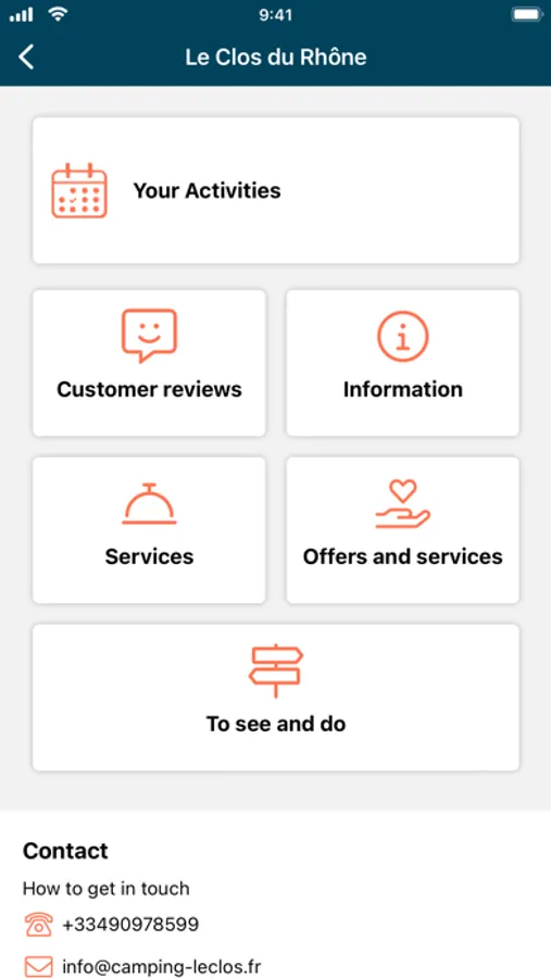 -Detain just a click away all practical information such as an agenda: schedules of our services and activities to see / do