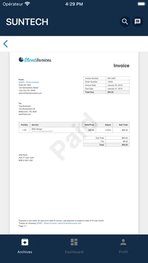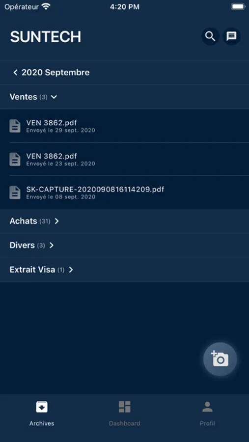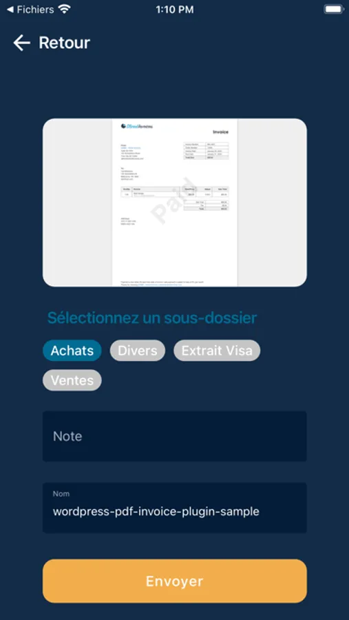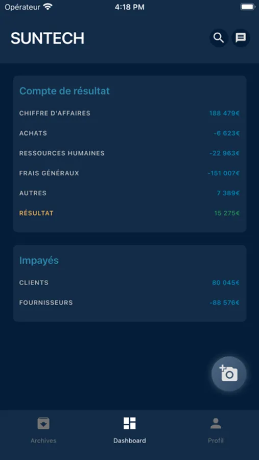 The application allows you to send your documents directly to your accountant, and to quickly consult your results.