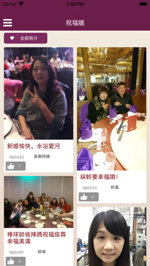 ◆共襄盛舉功能: 可以看到其他親友上傳的資料, 對新人有更多的了解 (新人若設定需要經過審核則需要等新人審核通過才看得到)