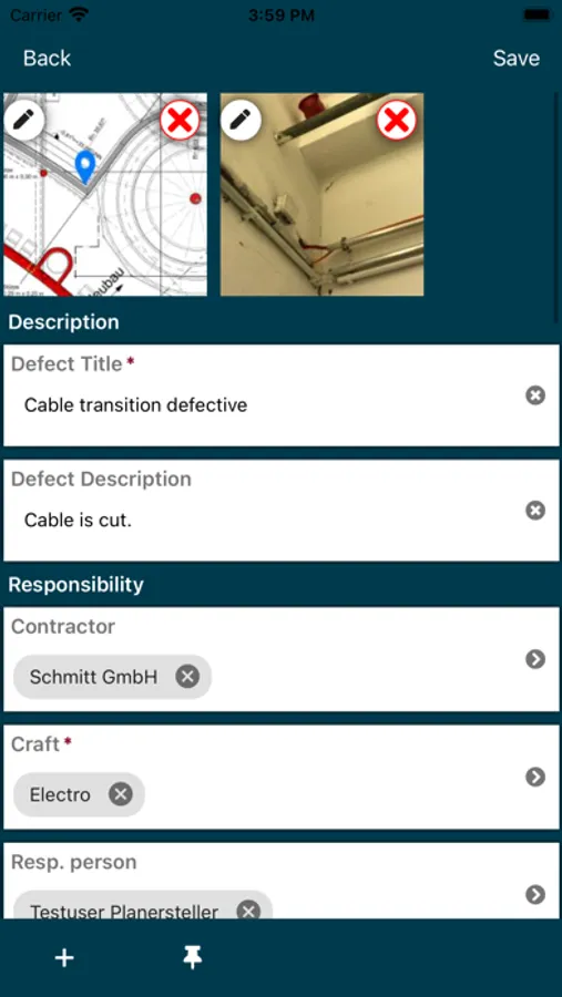 You can classify defects with all relevant information such as description, location, responsibility, costs and pictures. After free reporting of the subcontractor, you can download relevant