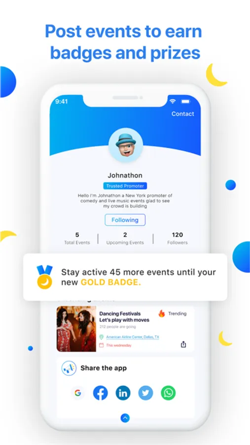 Introducing "Event Moon" the ultimate app for discovering and exploring local events happening near you. Whether you're searching for live music performances, community gatherings, or exciting activities to engage in, our comprehensive app is designed to provide you with an immersive event discovery and event promotion experience. With "Event Moon" you can easily find and attend a diverse range of local events, ensuring you never miss out on the excitement happening around you.