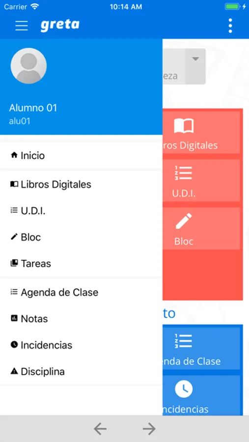 Si tu centro cuenta con Espacio Digital Greta para su gestión, como alumno, puedes usar tu cuenta de Greta y comprobar tus Libros Digitales, tus planificadores de estudio, tu cuaderno virtual y tus tareas además de una agenda de clase la cual establecerá tu profesor, podrás ver tus faltas y comunicarte directamente con el profesor.