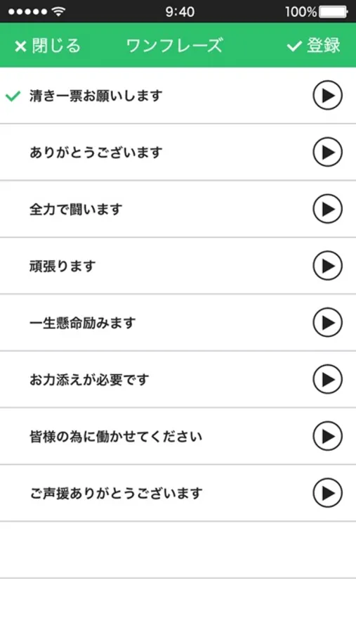 遊説の際、iPhone&iPadからスピーチを流しながら「ご声援ありがとうございます!」とワンフレーズも再生します。