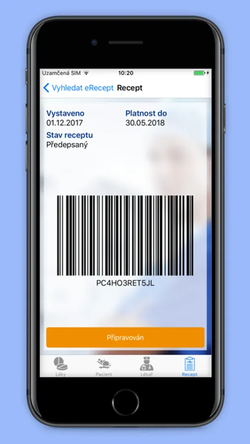 Aplikace slouží k načítání receptu z Centrálního úložiště elektronických receptů dle jeho identifikátoru případně načtením čárového kódu na eReceptu pacienta.