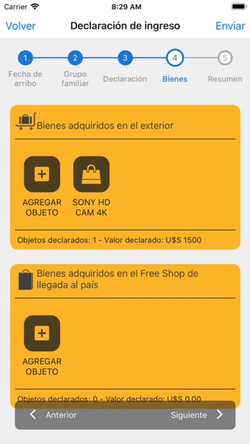 Aplicación para que el viajero haga anticipadamente su declaración de equipaje, por compras realizadas en el exterior que superen la franquicias, ingreso de divisas por más de U$S 10.000 y/o productos que requieran control sanitario.