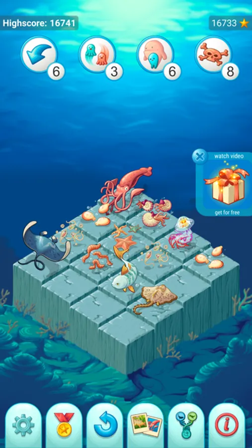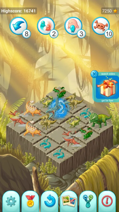 Merge the same blocks of plants or animals to evolve them into bigger more complex and more advanced creatures. Evolve from a little bacterium to beautiful flower tree, blue whale or the mighty T-Rex.