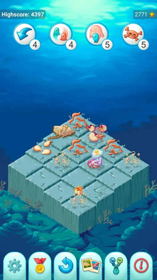 * Swipe blocks to merge them in more evolved creatures.