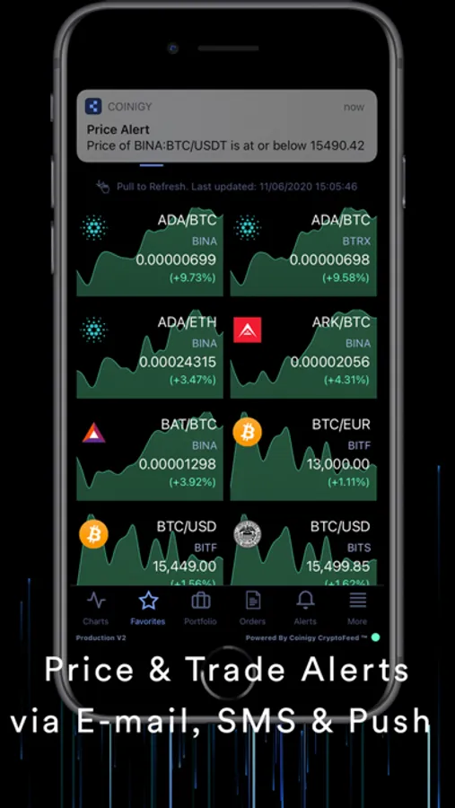 Powerful price alerts are available in-app, via e-mail, and SMS and push notifications