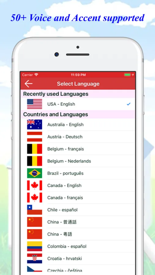 Supported languages and accents in our Voice Recognition:
