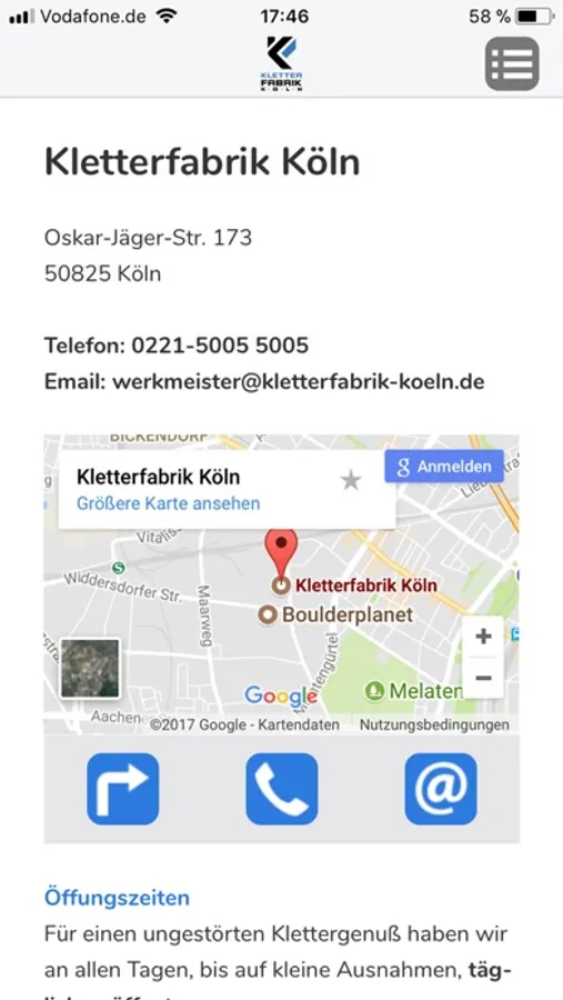 Weitere Funktionen der App sind der Direktanruf und der Routenplaner über Google Maps.
