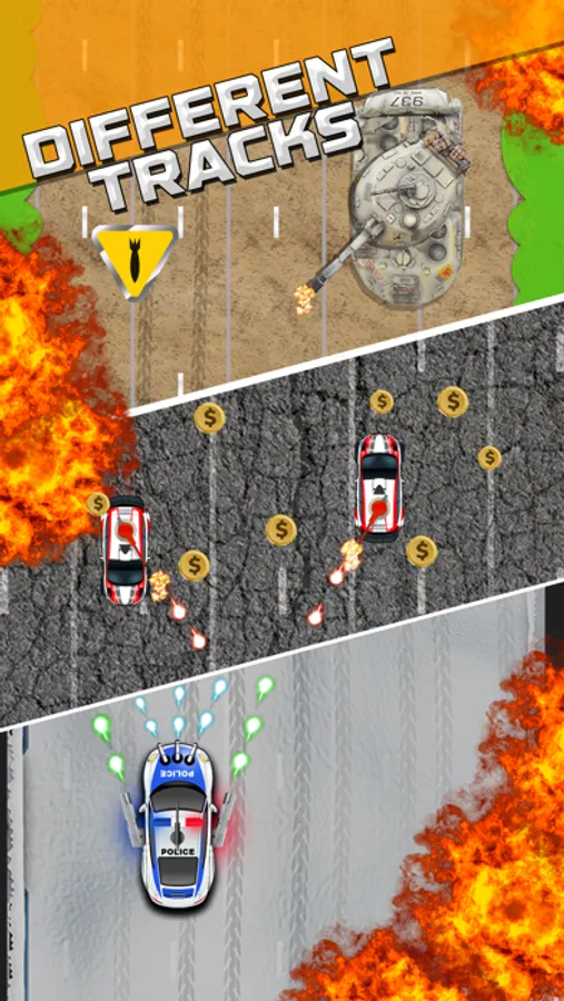 This game is our tribute to old arcade classic games. It has Fast cars, big guns and sleek armours.
