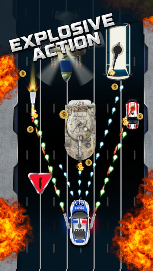 Police Road Riots Hot Pursuit is addictive, action-packed shooter and test your driving skills to the ultimate level. Dodge missiles, destroy enemy cars, Huge Tanks and Helicopters.
