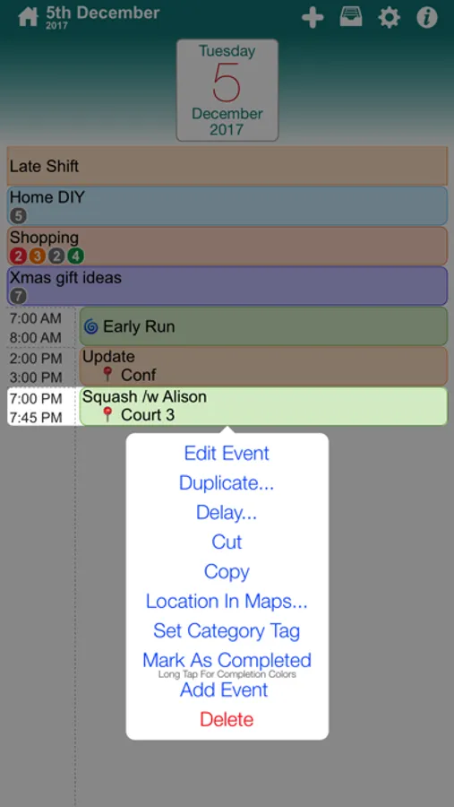 • Color code your task lists. Shopping, Home, DIY, whatever lists you want
