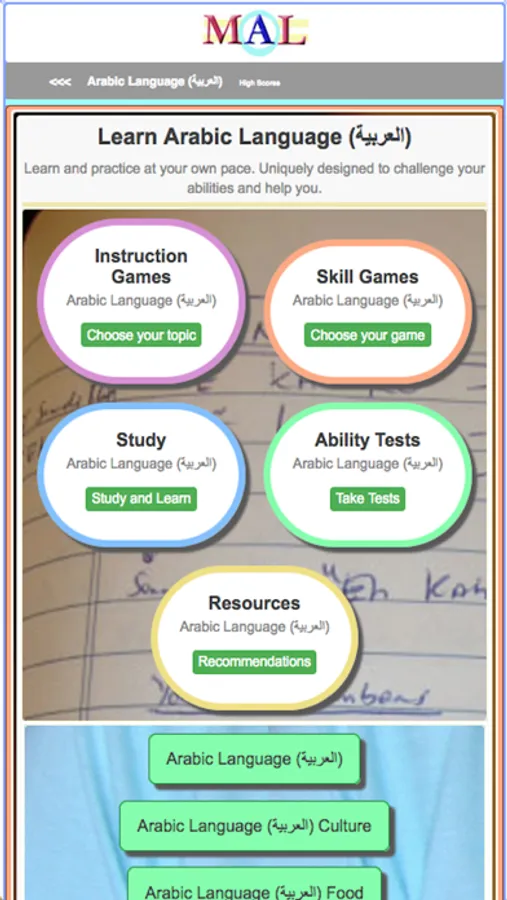 Play Arabic Learning Games, Study and Learn with online Flash cards, Take Arabic Tests