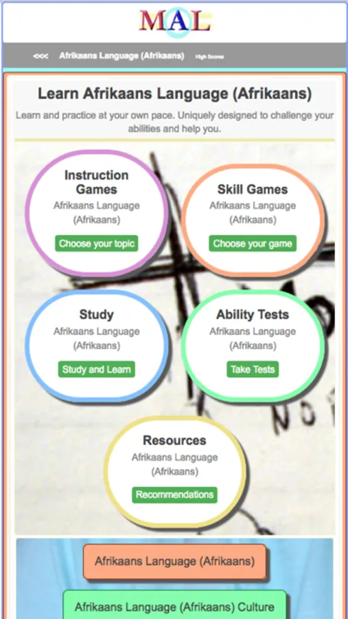 Play Afrikaans Learning Games, Study and Learn with online Flash cards, Take Afrikaans Tests