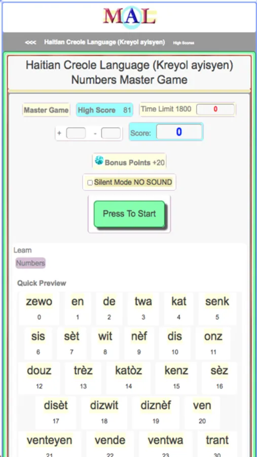 Play Haitian Creole Learning Games, Study and Learn with online Flash cards, Take Haitian Creole Tests