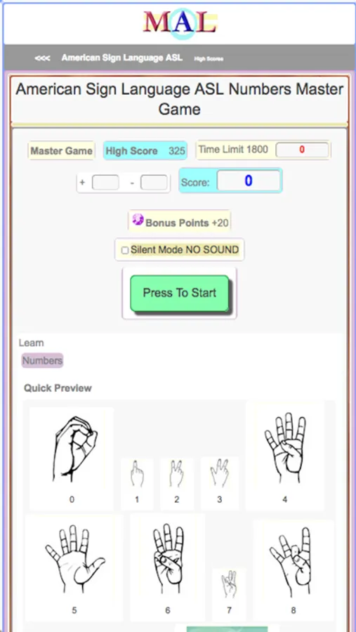 Play American Sign Language ASL Learning Games, Study and Learn with online Flash cards, Take American Sign Language ASL Tests