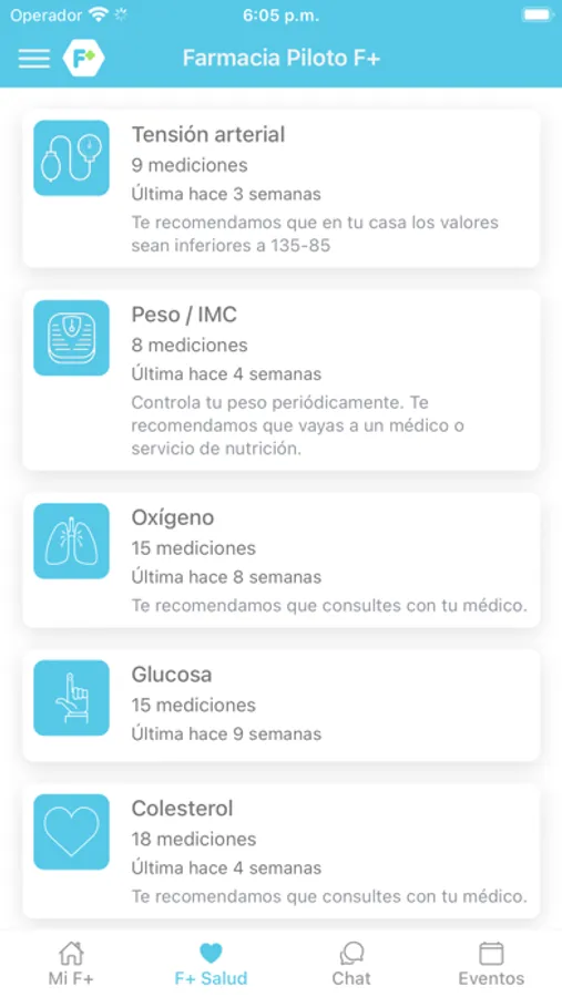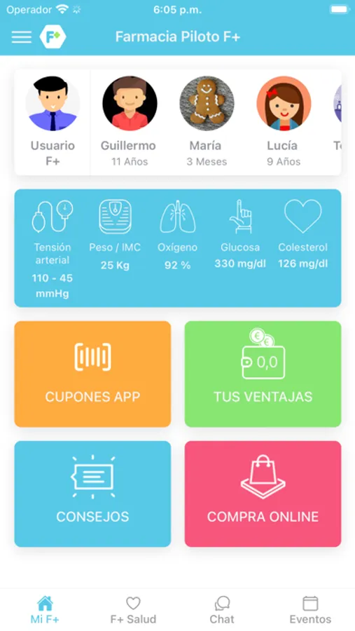 - Actualizar los datos de salud en tu domicilio o directamente en tu Farmacia F+.