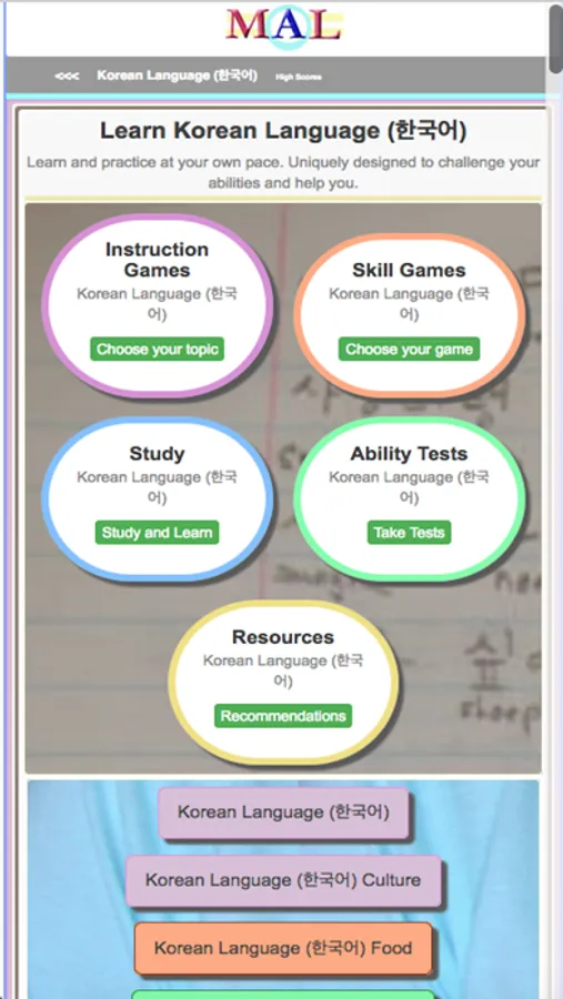 Play Korean Learning Games, Study and Learn with online Flash cards, Take Korean Tests