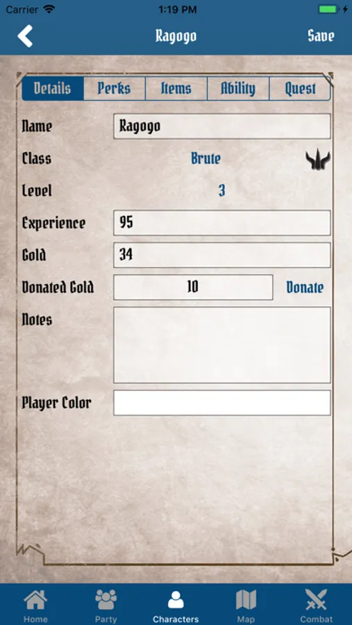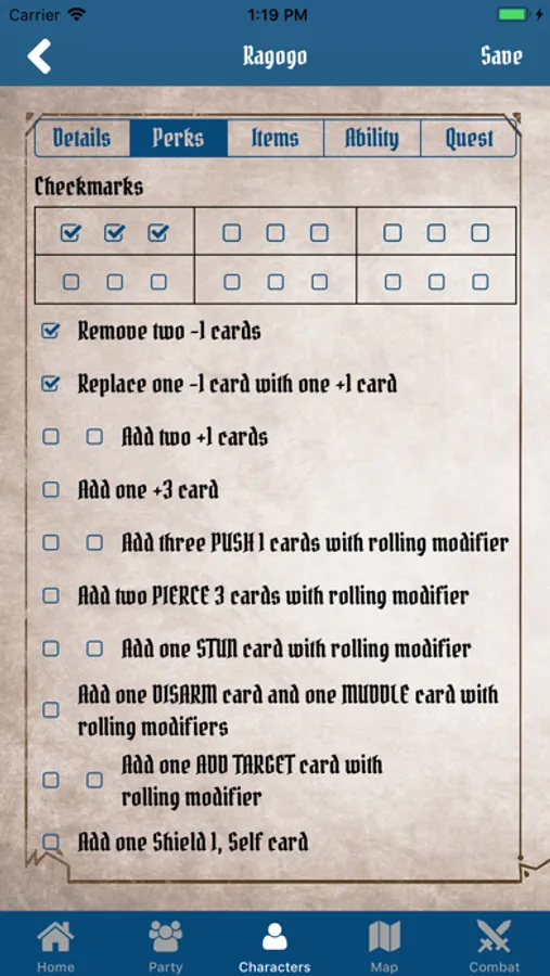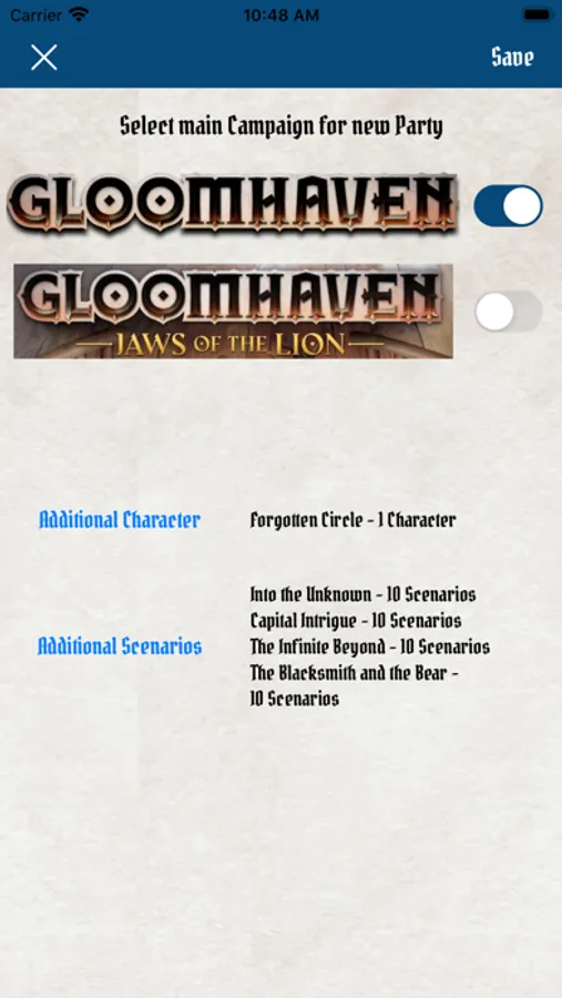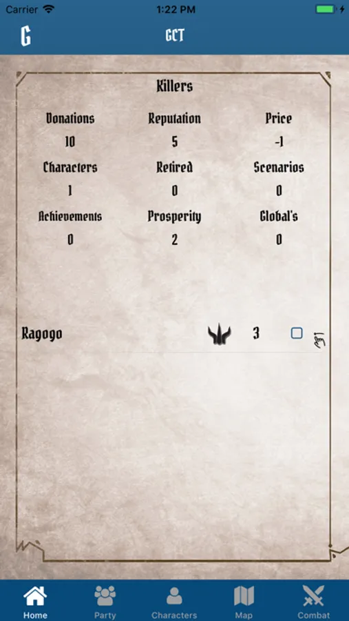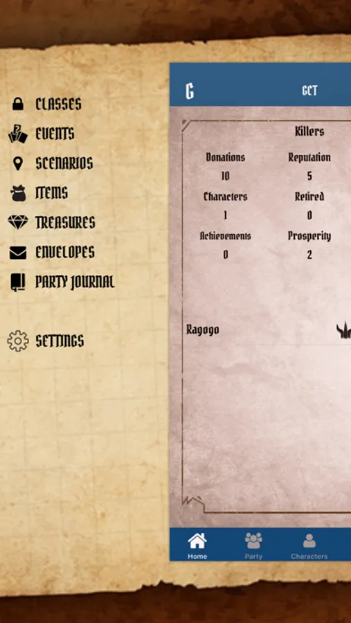 With the GCT, it is possible to keep track of the game progress in the board game. This is particularly useful when you want to play several campaigns in parallel or just manage your own character.