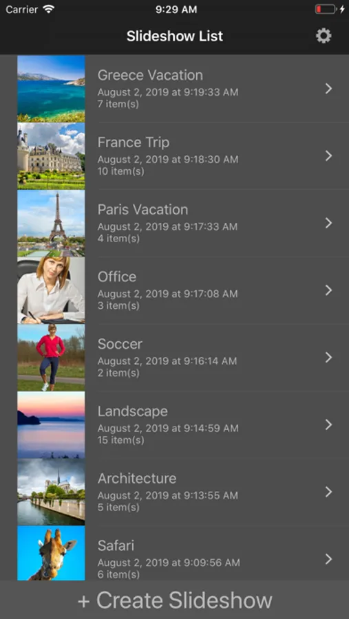 • Save all your slideshow configurations and videos for future quick access