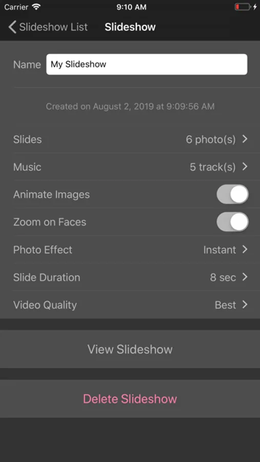 Create animated photo slideshow with music. Your photos flow nicely, zooming on faces. Play slideshow on TV, save, or share the video.