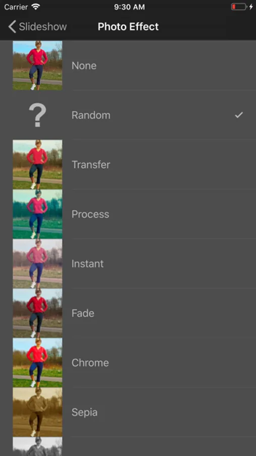 • Apply creative effects to the slide photos